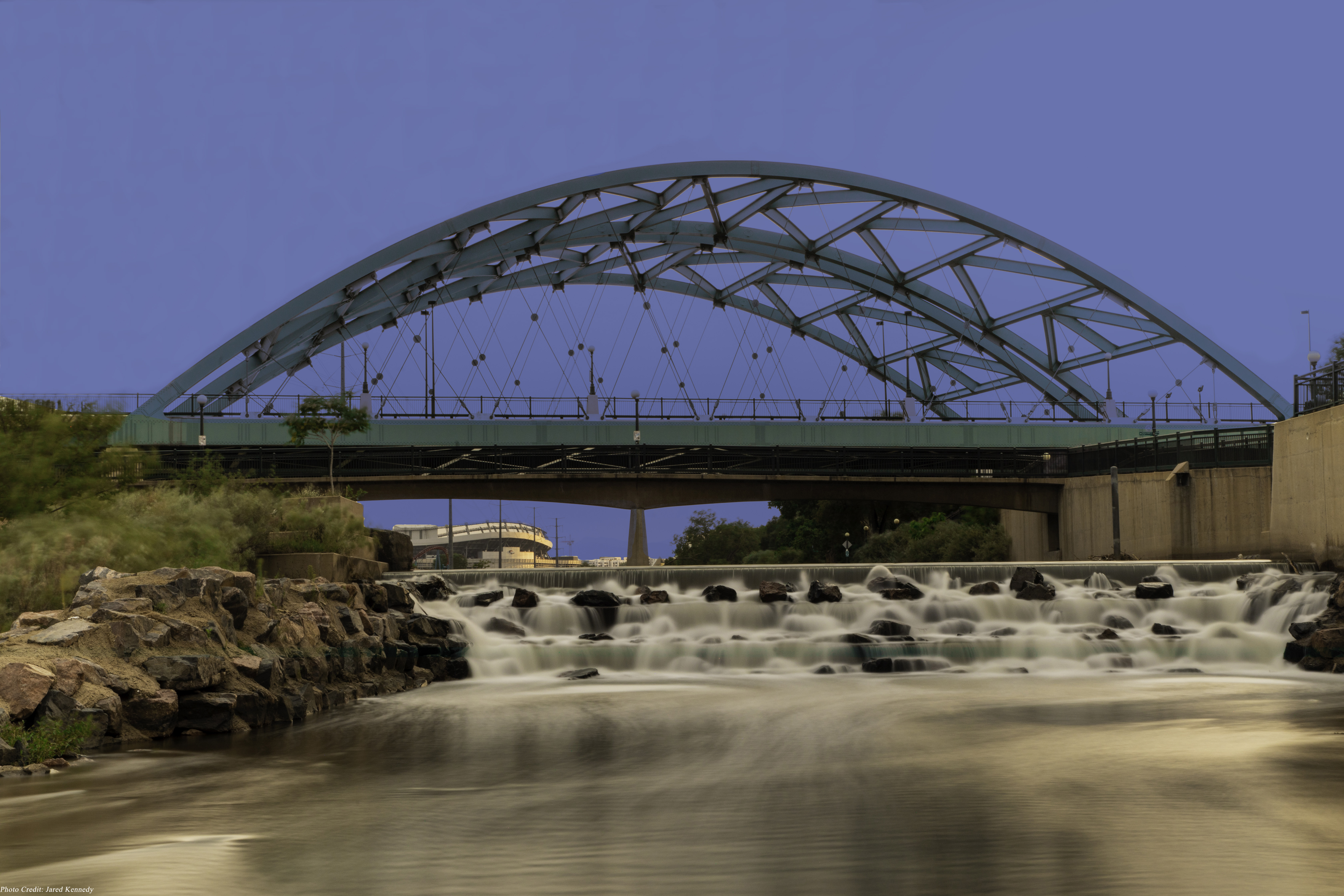 Photo taken from the waterfront by REI Off 15th and Platte with a view of the 15th st Bridge and Mile High Stadium in the background. Canon 5DMK4. ND10filter with shutter at 15sec.
