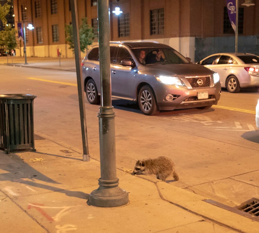 When the bars close and the people stagger home, the trash pandas comes out and begin their feast! They are quite efficient and do not consume energy, leaving a low carbon footprint. This raccoon was spotted on 19th and market and calls home to a sewer drain. A local street resident told my buddy to be careful because it has babies and could attack. I quickly switched my camera from photo to video mode but was unsuccessful in obtaining video footage of my friends potential attack. Oh well…..